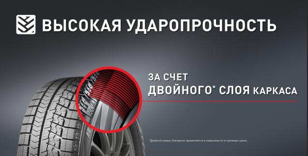 *Двойной слой каркаса применяется в зависимости от размера шины